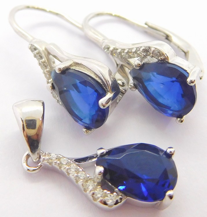 Druh: stříbrné náušnice se zirkony a modrými safíry