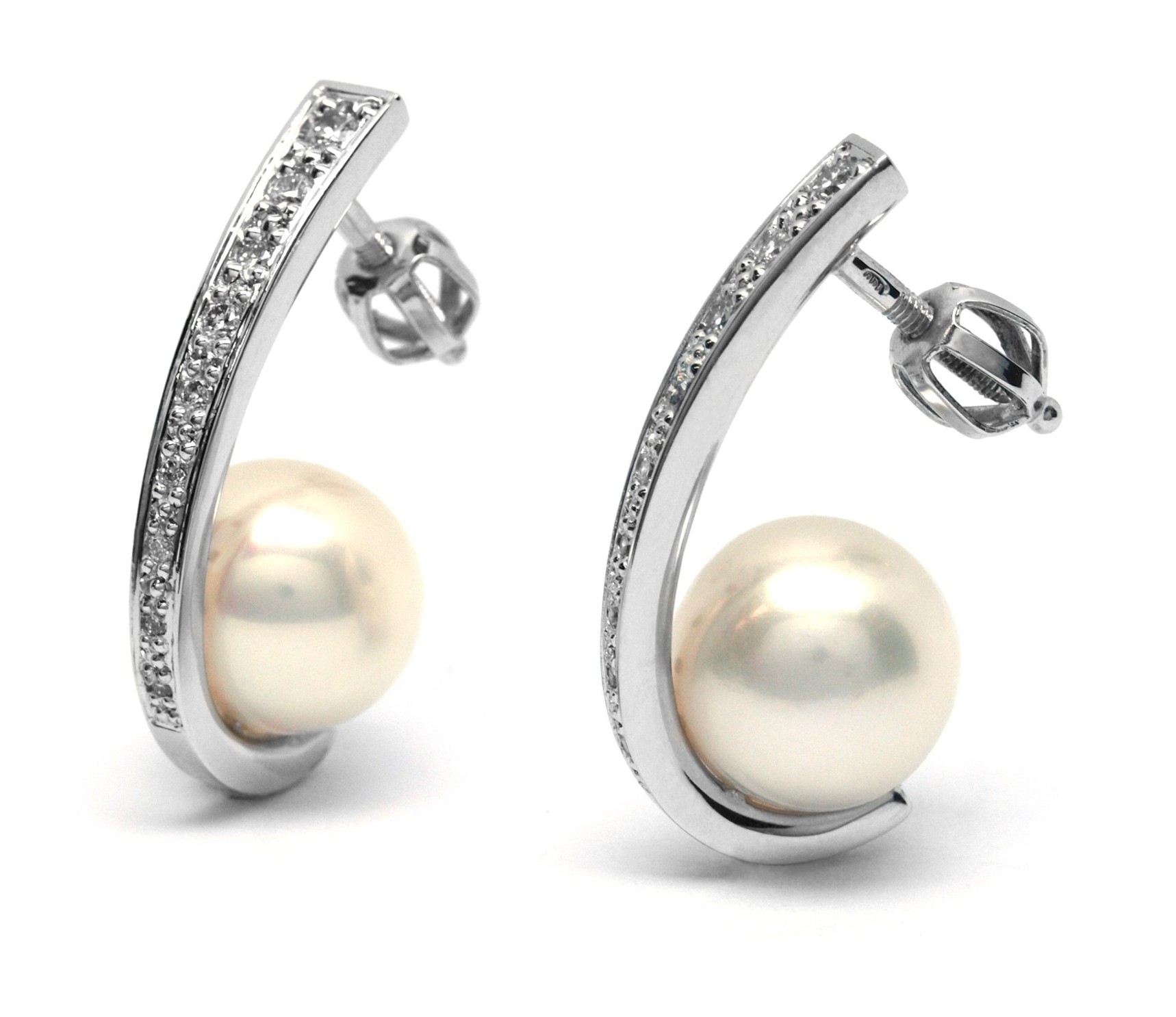 Ručně vyrobené náušnice z bílého zlata s perlami a diamanty J-28711-17