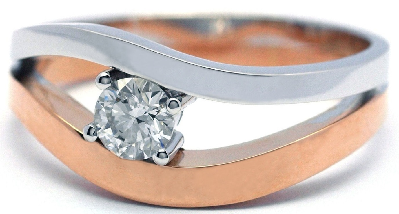 Ručně vyrobený prsten z bílého a červeného zlata s diamantem