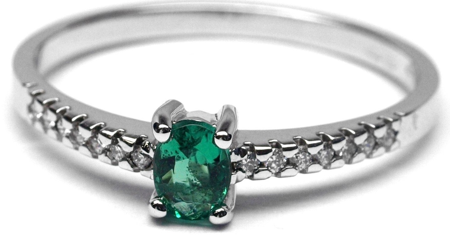 - Klenoty Budín Ručně vyrobený prsten z bílého zlata se smaragdem a diamanty J-28044-17