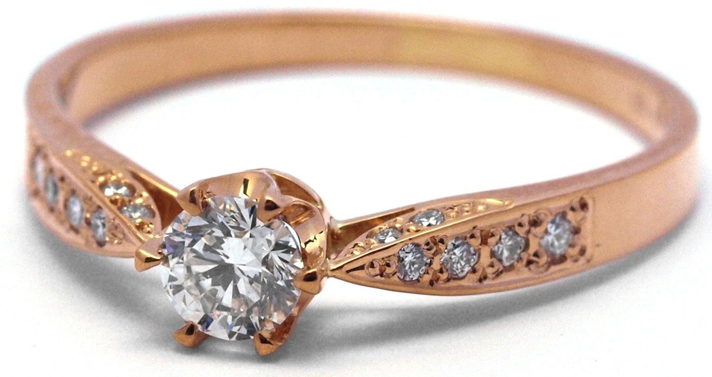 - Klenoty Budín Ručně vyrobený zásnubní prsten z červeného zlata s diamanty J-28726-17