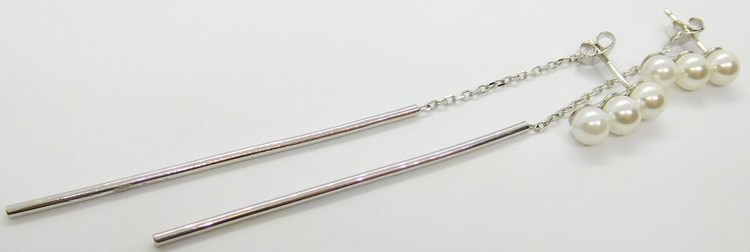 Klenoty Budín Stříbrné řetízkové visací náušnice s perlami 925/1000 4,18gr SVLE0251X61P100