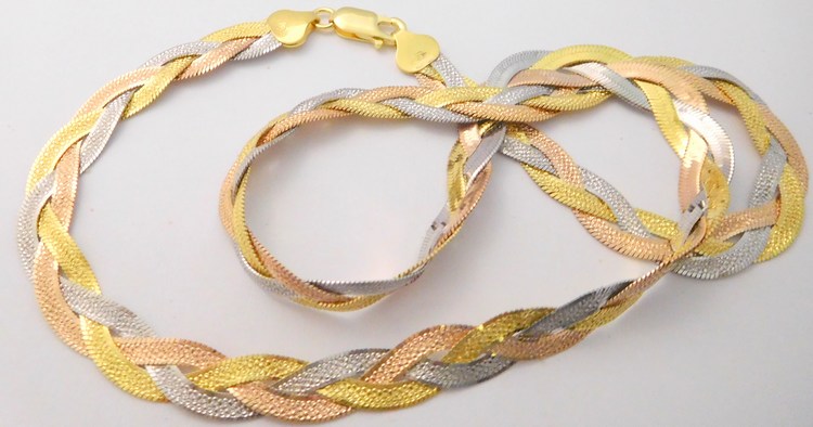 Materiál šperku: stříbrné, zlaté a růžové zlacení (pletýnka) - tzv. tricolor
