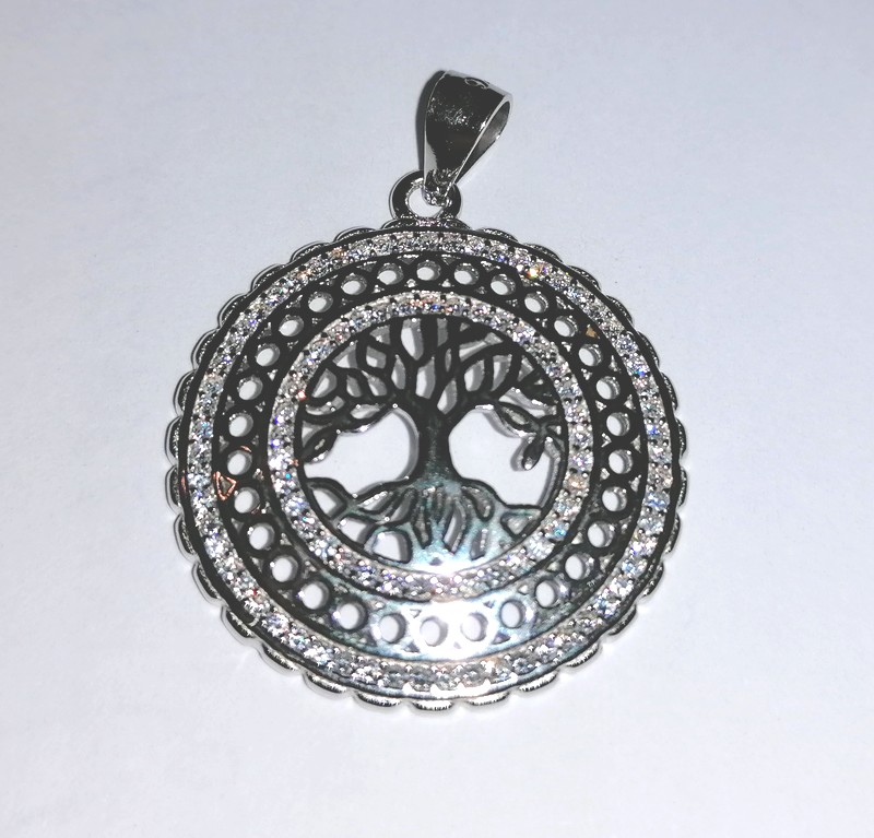 Stříbrný přívěšek se zirkony - strom života ve dvojitém kruhu pr. 30mm 0310251