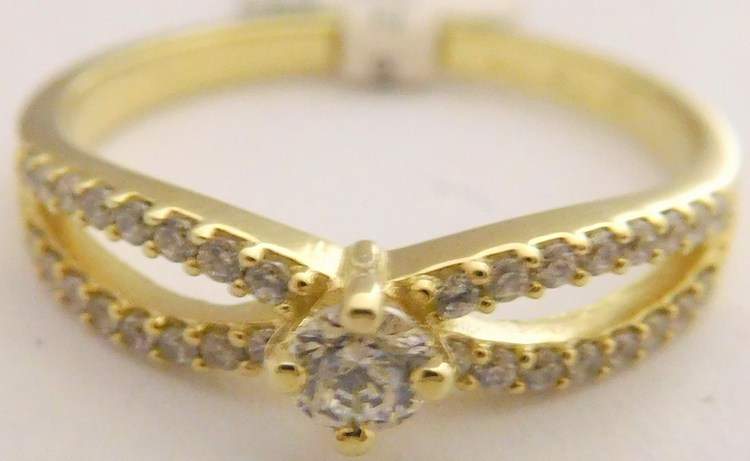 Zásnubní zlatý prsten posetý mnoha zirkony ze žlutého zlata 585/2,12gr vel. 53 3510229