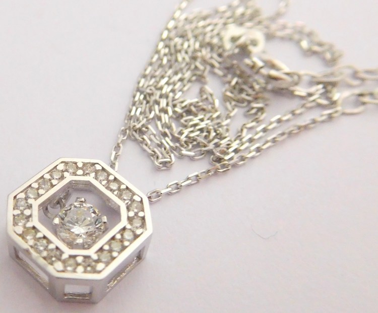 - Klenoty Budín Zlatá souprava z bílého zlata s pohybujícím se kamínkem (přívěsek) 585/2,28gr 42-45cm HK4004