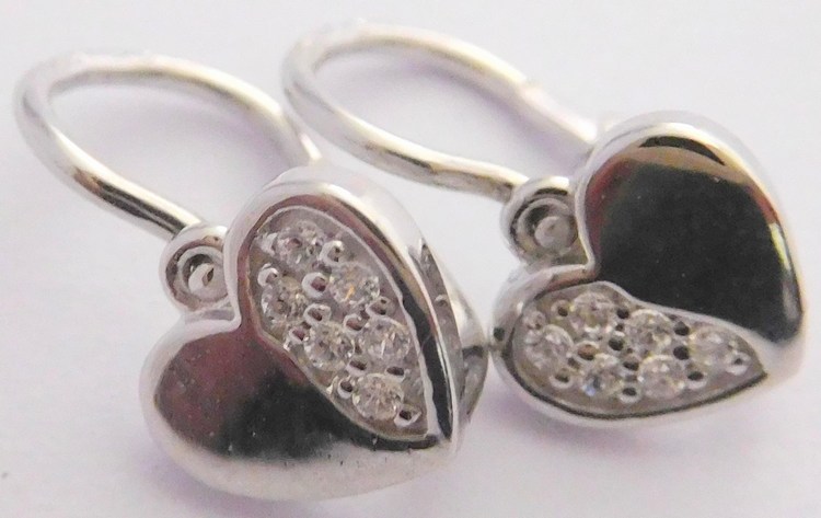 - Klenoty Budín Zlaté dětské náušnice z bílého zlata se zirkony - srdíčka 585/1,05gr 336041230