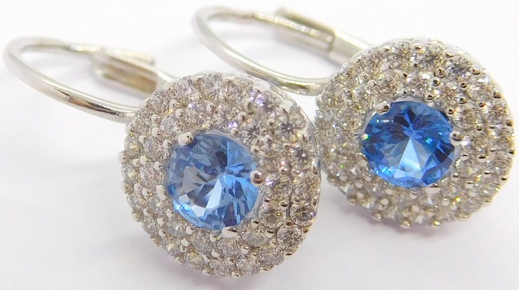 Druh: klasické zlaté náušnice se zirkony a modré topazy