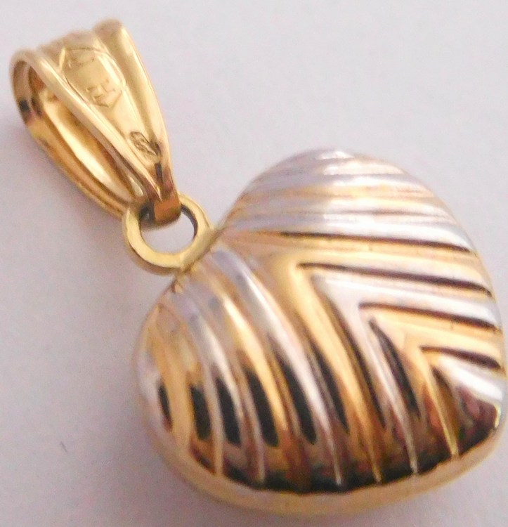 Zlaté velké duté srdíčko z bílého a žlutého zlata s gravírováním 585/0,87gr H714