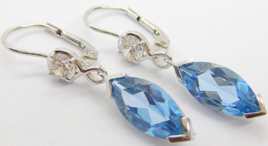 Drahé kameny:2 ks čiré velké modré akvamaríny (synt.)+ zirkony 2ks