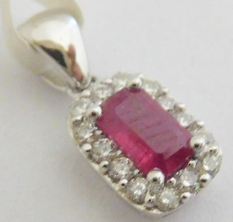 Zlatý diamantový přívěsek z bílého zlata s brilianty a červeným přírodním rubínem 585/0,70gr 3870052