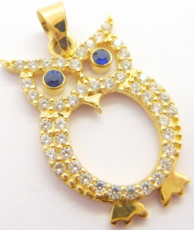 Klenoty Budín Zlatý přívěsek posetý zirkony a modrými safíry - sovička 585/1,65gr HK3020