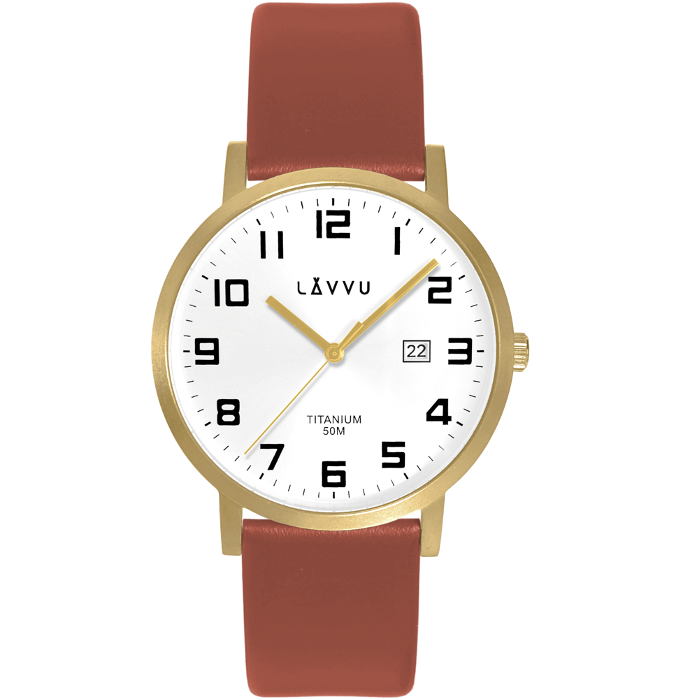 LAVVU Extrémně lehké titanové hodinky LAVVU TITANIUM LYNGDAL Gold LWM0212