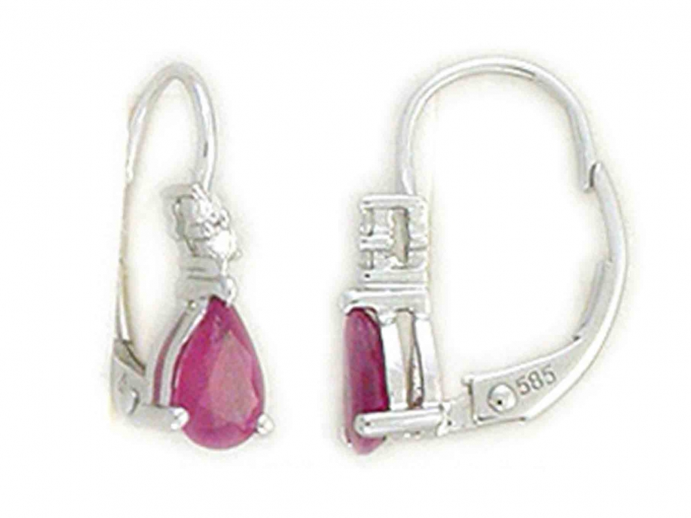 Luxusní diamantové náušnice s přírodním červeným rubínem z bílého zlata 585/1,6
