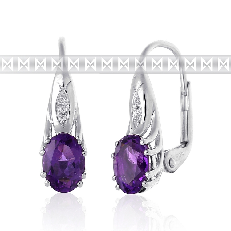 Diamantové náušnice, bílé zlato briliant, ametyst fialový - popis produktu