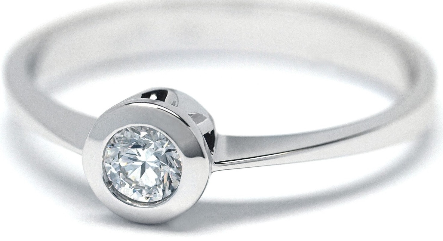 Zásnubní prsten z bílého zlata s diamantem vyrobený kombinací ruční a strojové práce