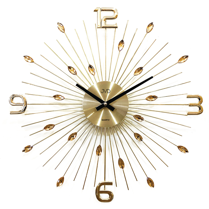 Moderní a neobvyklý sluňíčkový design quartzových hodin značky JVD, který kombinuje kov a zrcátka dokáže oživit každý interiér.