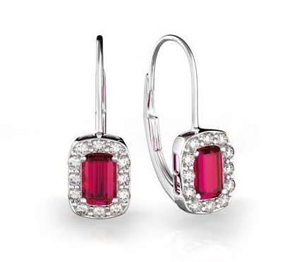 Luxusní náušnice s diamanty, rubín, bílé zlato, Josefína