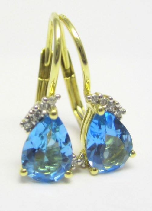 Luxusní zlaté diamantové náušnice s pravými modrými topazy 585/1,60g 3830062