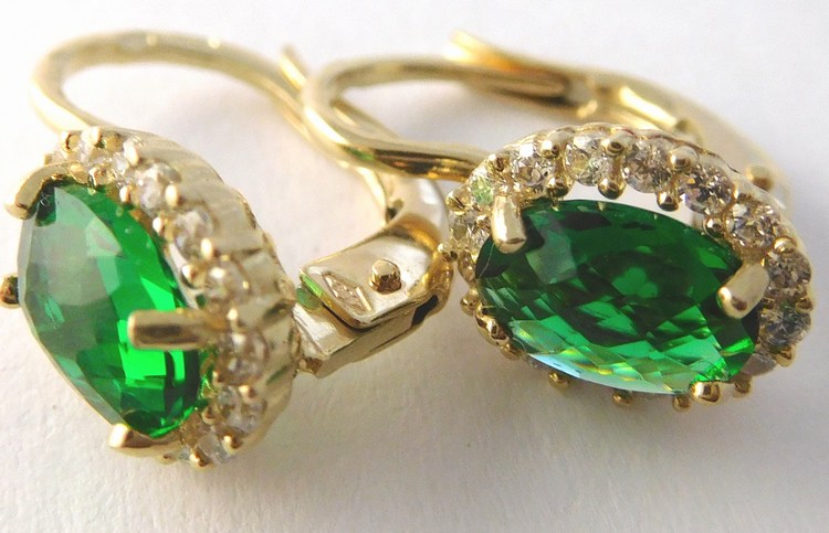 - Klenoty Budín Mohutné dámské zlaté náušnice se zelenými smaragdy (2ks) 585/2,47gr HK2316