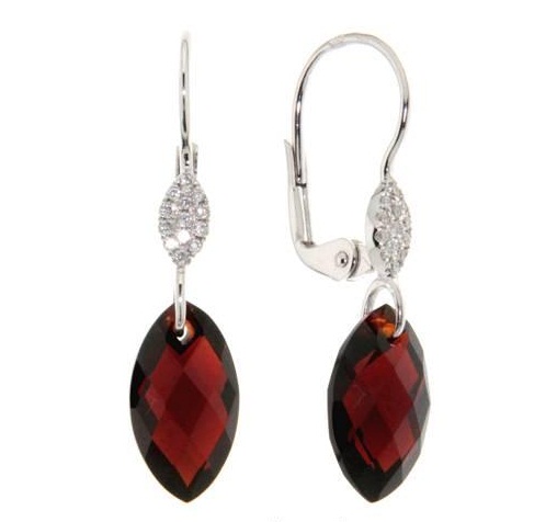Náušnice s diamanty, almandýn, kolekce Breeze, bílé zlato