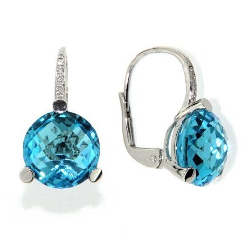 - Náušnice s diamanty, blue topaz, kolekce Natural, bílé zlato