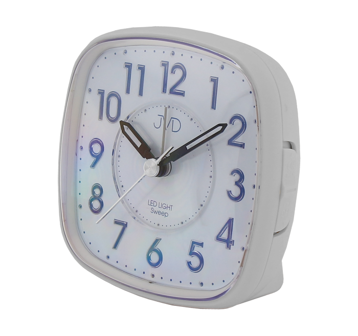 Quartzový budík JVD má LED podsvícení číselníku, díky čemuž krásně vyniknou čísla na ciferníku. Díky postupnému zesilování zvonění a opakování buzení jen tak nezaspíte. Praktickou vlastností je také plynulý chod vteřinové ručky - budík netiká.