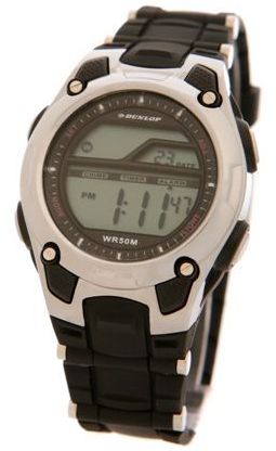 Sportovní DUNLOP DUN-168-L01 vodotěsné digitálky s praktickými funkcemi (čas, datum, stopky s 1 mezičasem, budík, Timer - odečítací minutka, dvě čas. pásma), čitelné s podsvícením EL osvětlením.