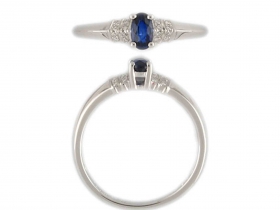 - Prsten s diamantem, bílé zlato briliant, modrý safír