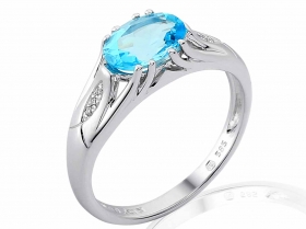 Prsten s diamantem, bílé zlato briliant, modrý topaz (blue topaz) 3861897-0-53-93