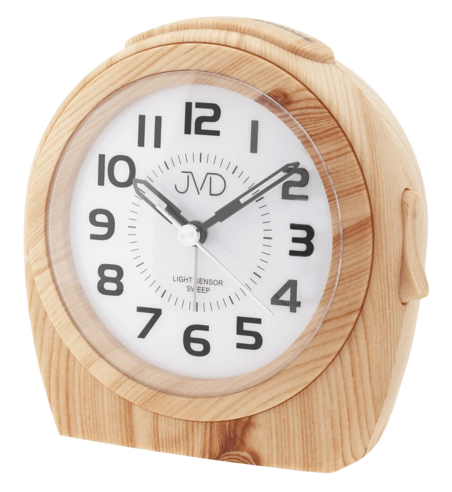 Ručkový netikající budík JVD sweep SRP910.12 se světelným senzorem imitace dřeva
