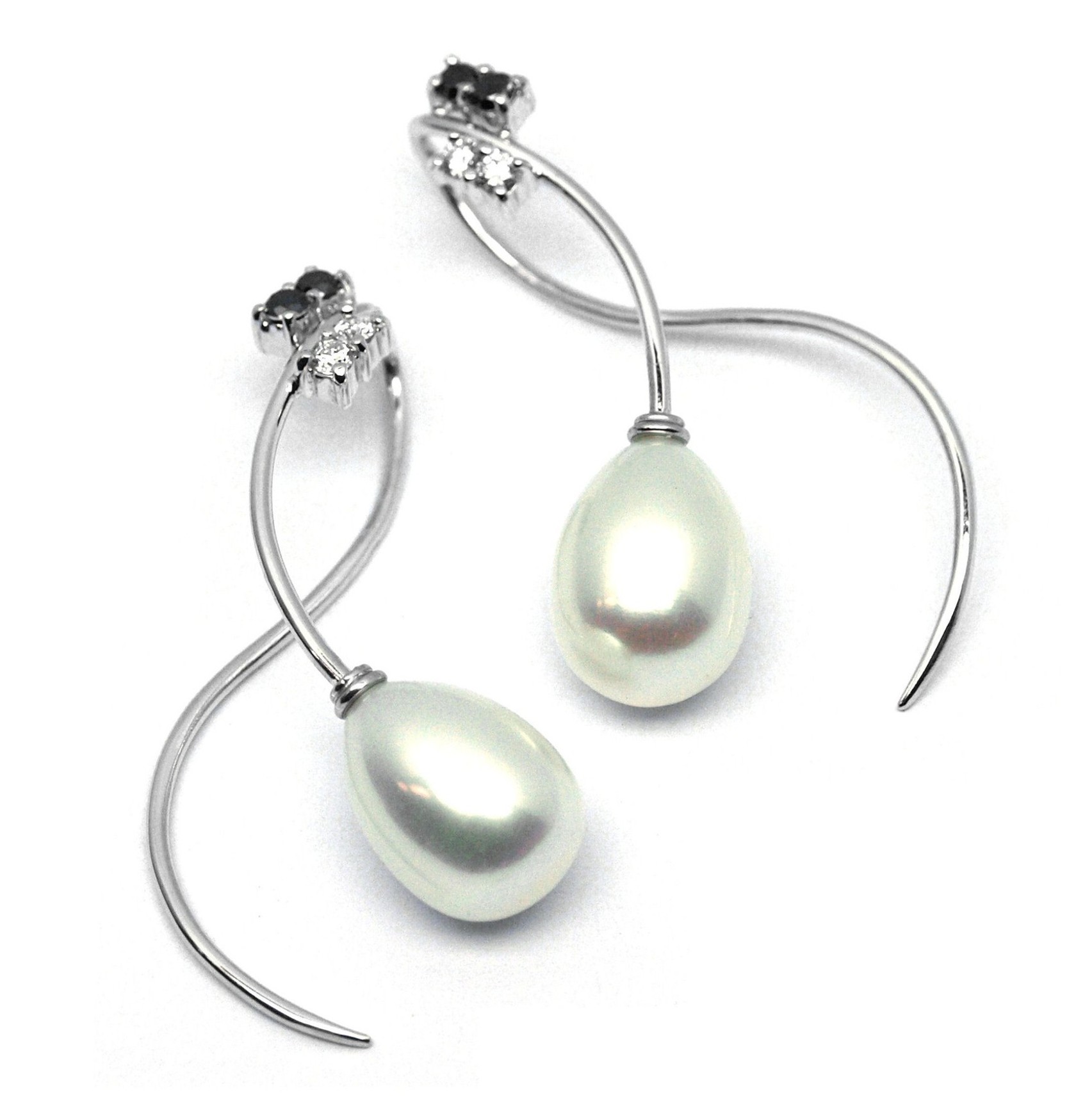 Ručně vyrobené náušnice z bílého zlata s perlami a diamanty J-29127-17
