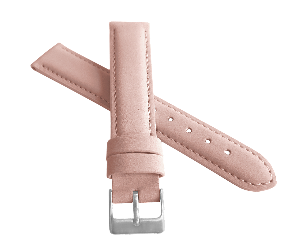 Růžový prošitý kožený řemínek MINET z jemného nubuku - 14mm na hodinky
