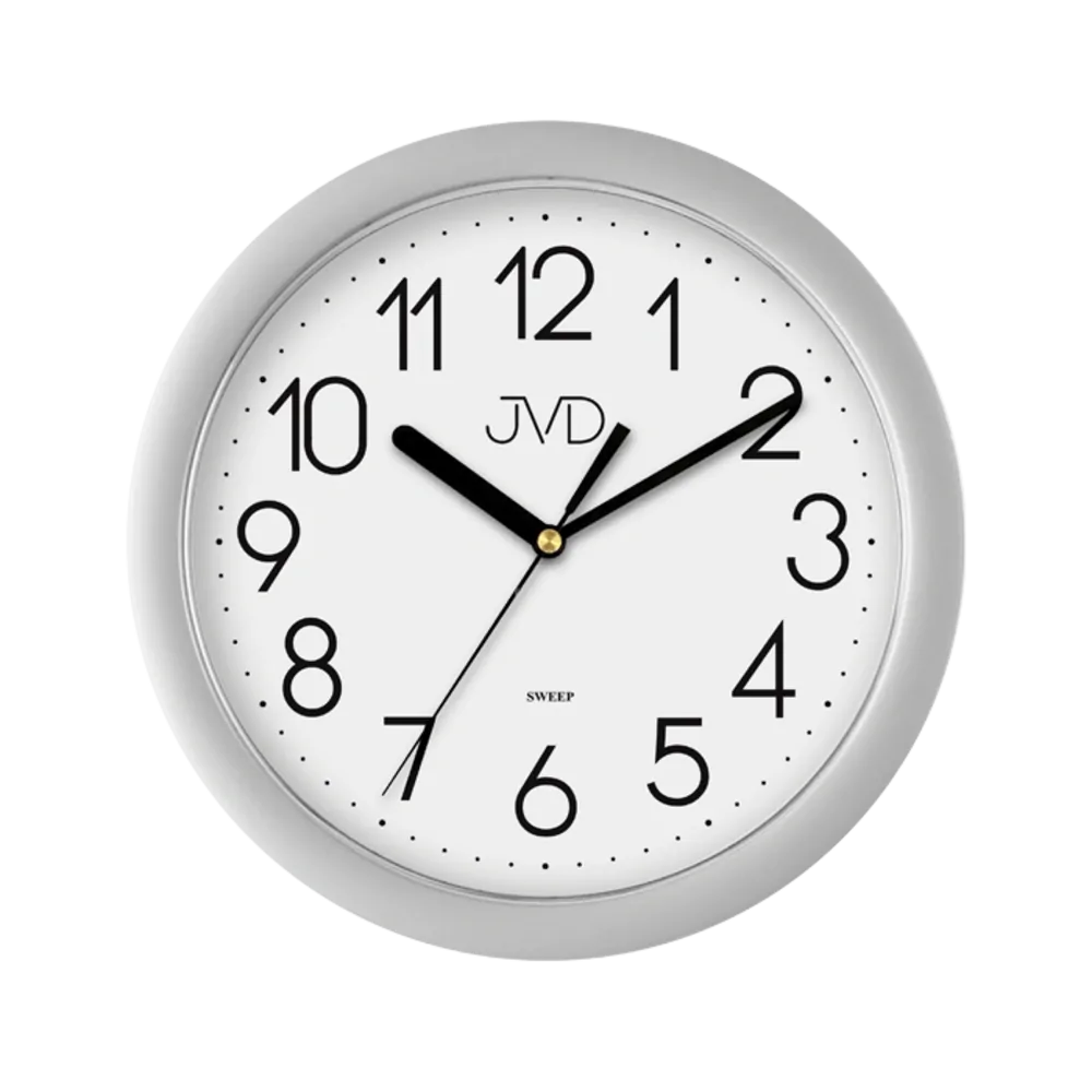 JVD Stříbrné plastové nástěnné netikající tiché hodiny JVD sweep HP612.7Skladem299 Kč/ ks247 Kč bez DPH