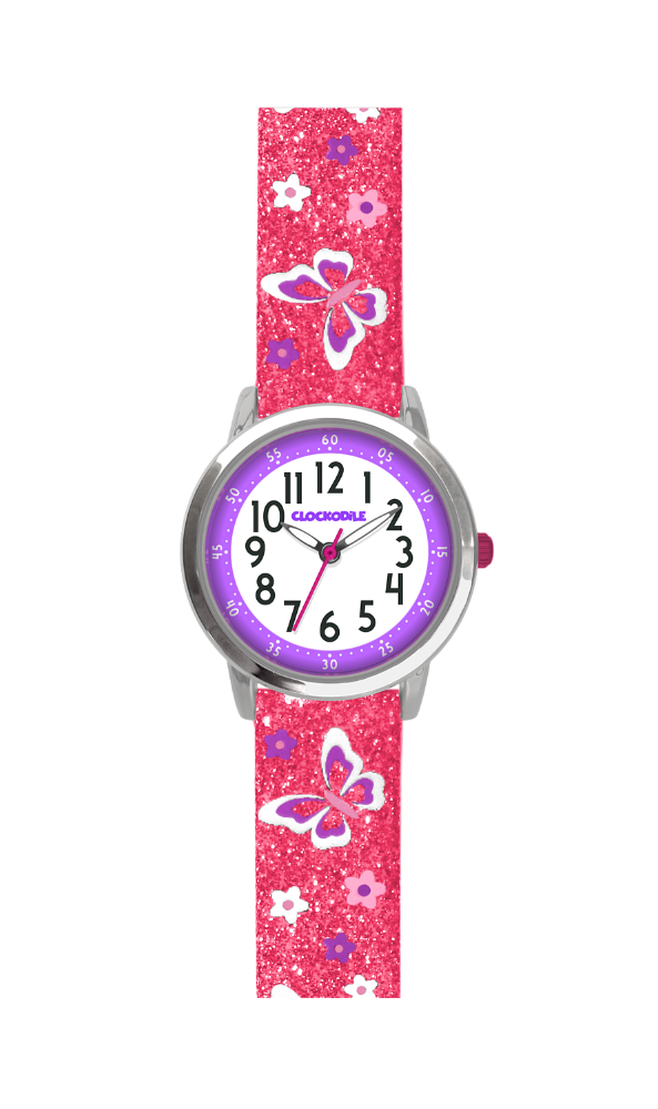 Svítící motýlí růžové dívčí hodinky CLOCKODILE BUTTERFLIES se třpytkami CWG5042