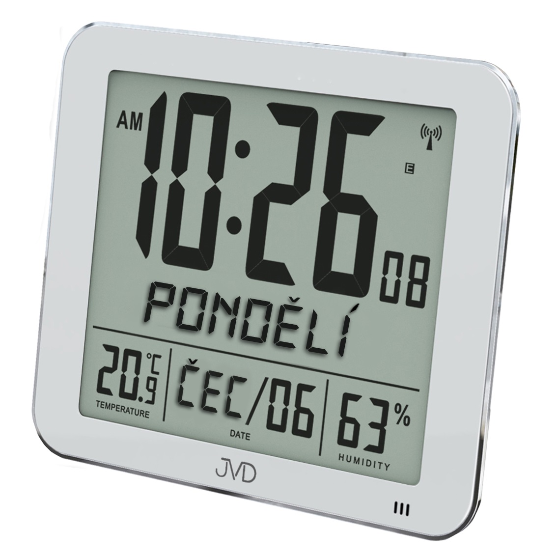 Velké rádiem řízené digitální hodiny s budíkem JVD stříbrné DH9335.1