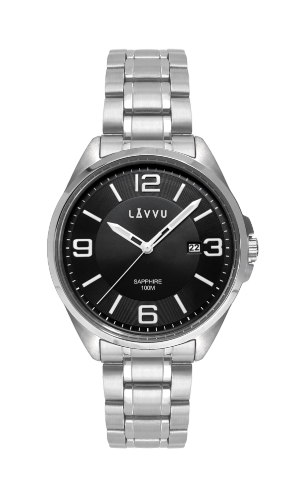 Vodotěsné pánské hodinky se safírovým sklem LAVVU HERNING Black LWM0092