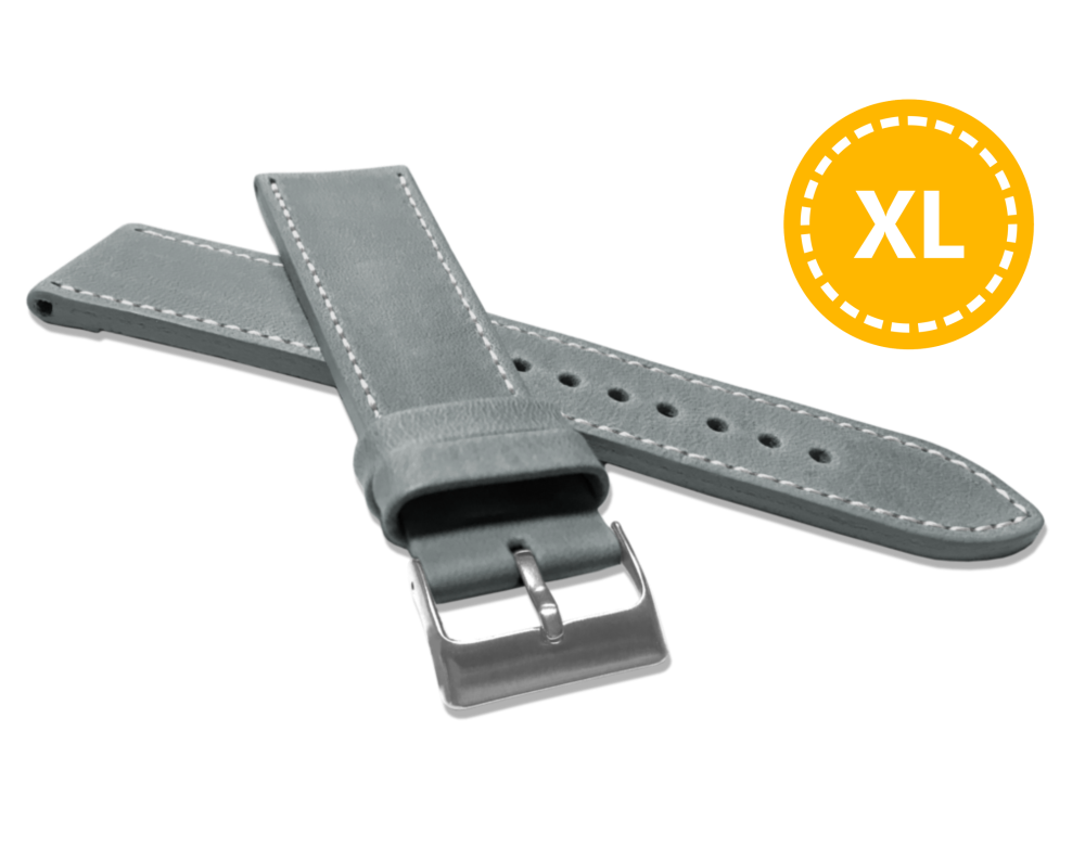 XL Prodloužený prošitý šedý řemínek LAVVU SPORT z luxusní kůže Top Grain - 20 XL LSAXA20