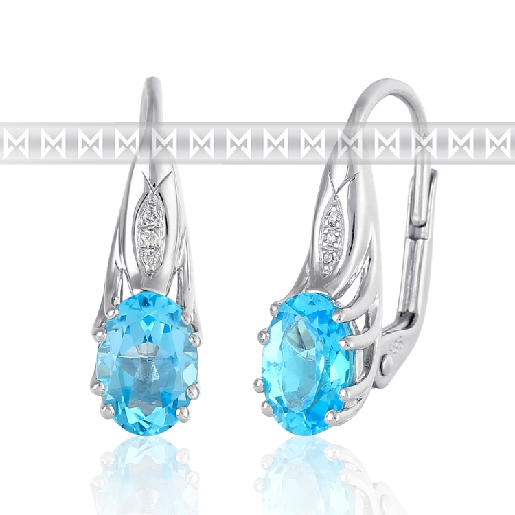 - Zlaté diamantové náušnice z bílého zlata s velkými modrými topazy (blue topaz)