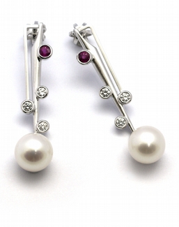Zlaté náušnice s perlami, rubíny a diamanty 585/2,98 gr J-21679-12 POŠTOVNÉ ZDARMA!Skladem85 175 Kč/ ks70 393 Kč bez DPH