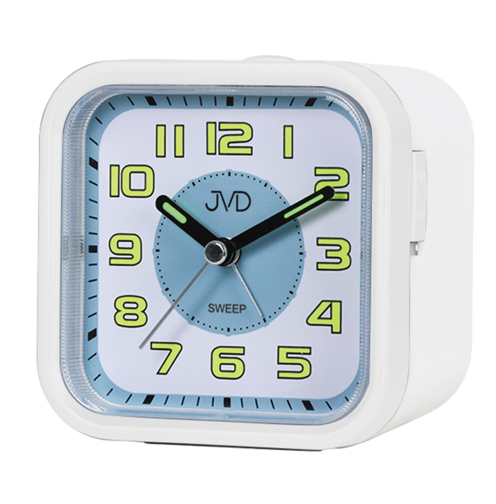 JVD Bílý tichý netikající ručkový budík s LED osvětlením JVD SRP9504.3
