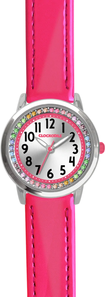 CLOCKODILE Náramkové tmavě růžové dívčí dětské hodinky s kamínky CWG5233