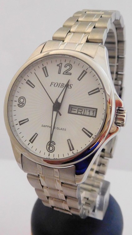 - Foibos Dámské čitelné stříbrné vodotěsné přehledné hodinky Foibos CK7162.1 se safírovým sklem 10ATM