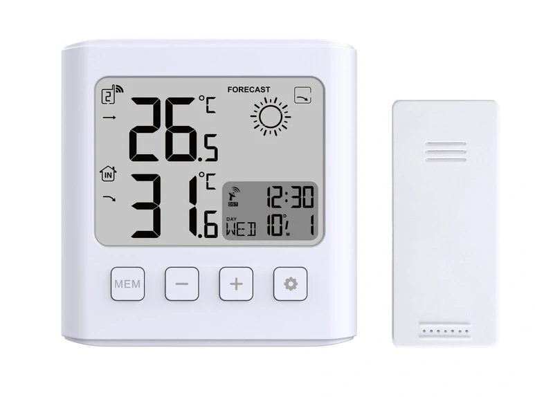 | Speciální funkce | Datum (kalendář) Budík Předpověď počasí Teplota (Celsius nebo Fahrenheit) 12-ti nebo 24-hodinový denní režim odložení buzení kalendář vnitřní teplota venkovní teplota bezdrátové venkovní čidlo |