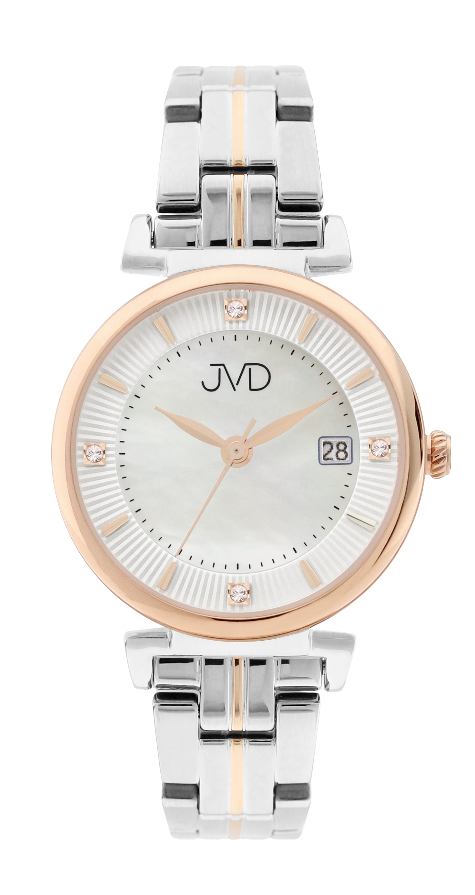 Design dámských hodinek JVD je překvapivě důmyslný. Chladná nerezová ocel, rafinované pozadí, ladné proporce a zajímavé detaily dávají najevo, že jako majitelka takových hodinek nebudete lehce k mání a rozhodně víte, co chcete.
