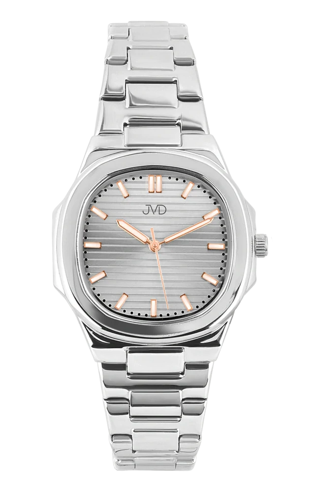 Design dámských hodinek JVD je překvapivě důmyslný. Chladná nerezová ocel, rafinované pozadí, ladné proporce a zajímavé detaily dávají najevo, že jako majitelka takových hodinek nebudete lehce k mání a rozhodně víte, co chcete.