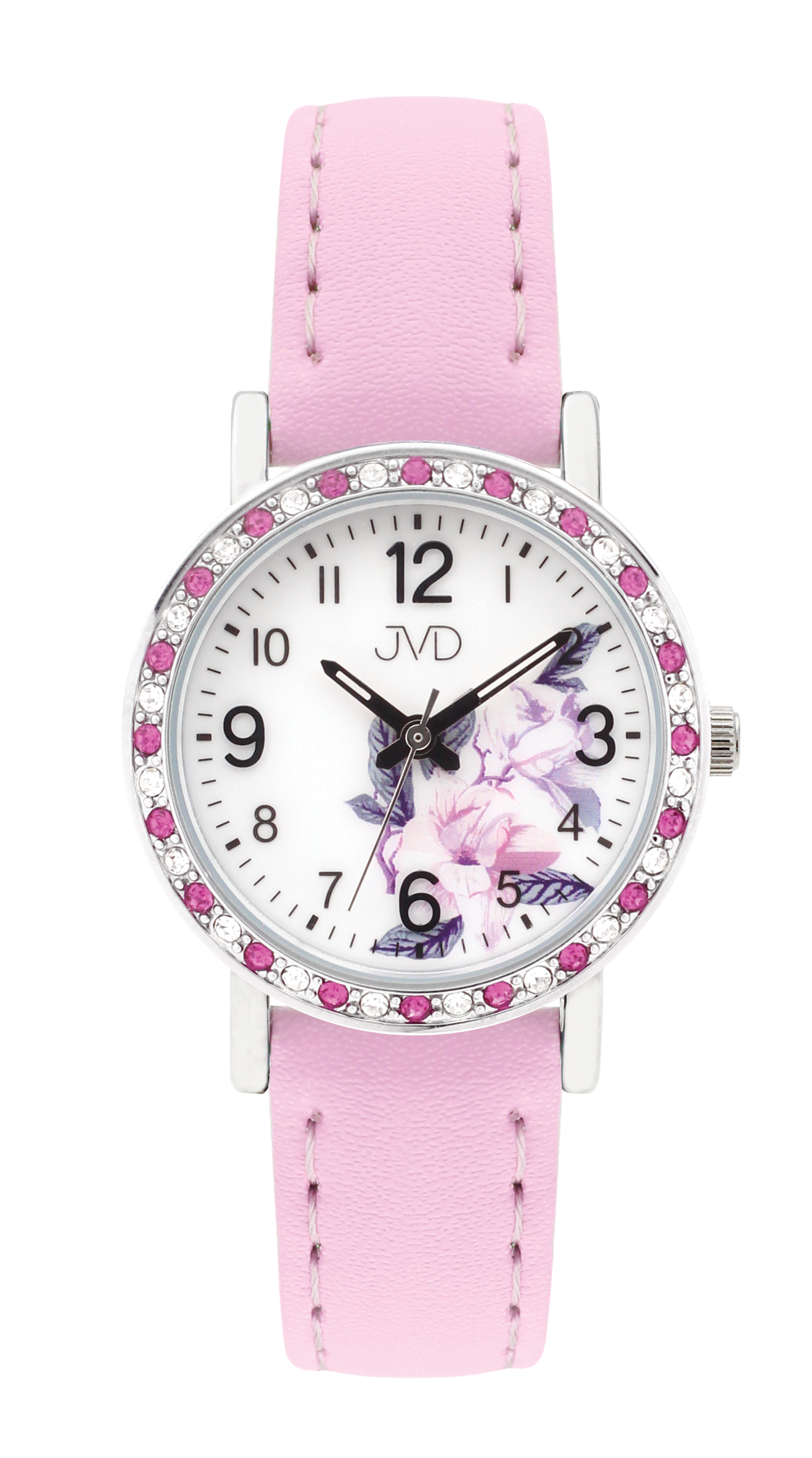 JVD Dětské dívčí růžové náramkové hodinky s květinovým vzorem JVD J7207.6