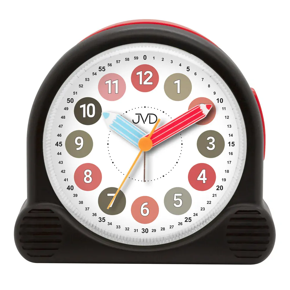 JVD Dětský černý ručkový netikající tichý sweep budík JVD SRP160.3