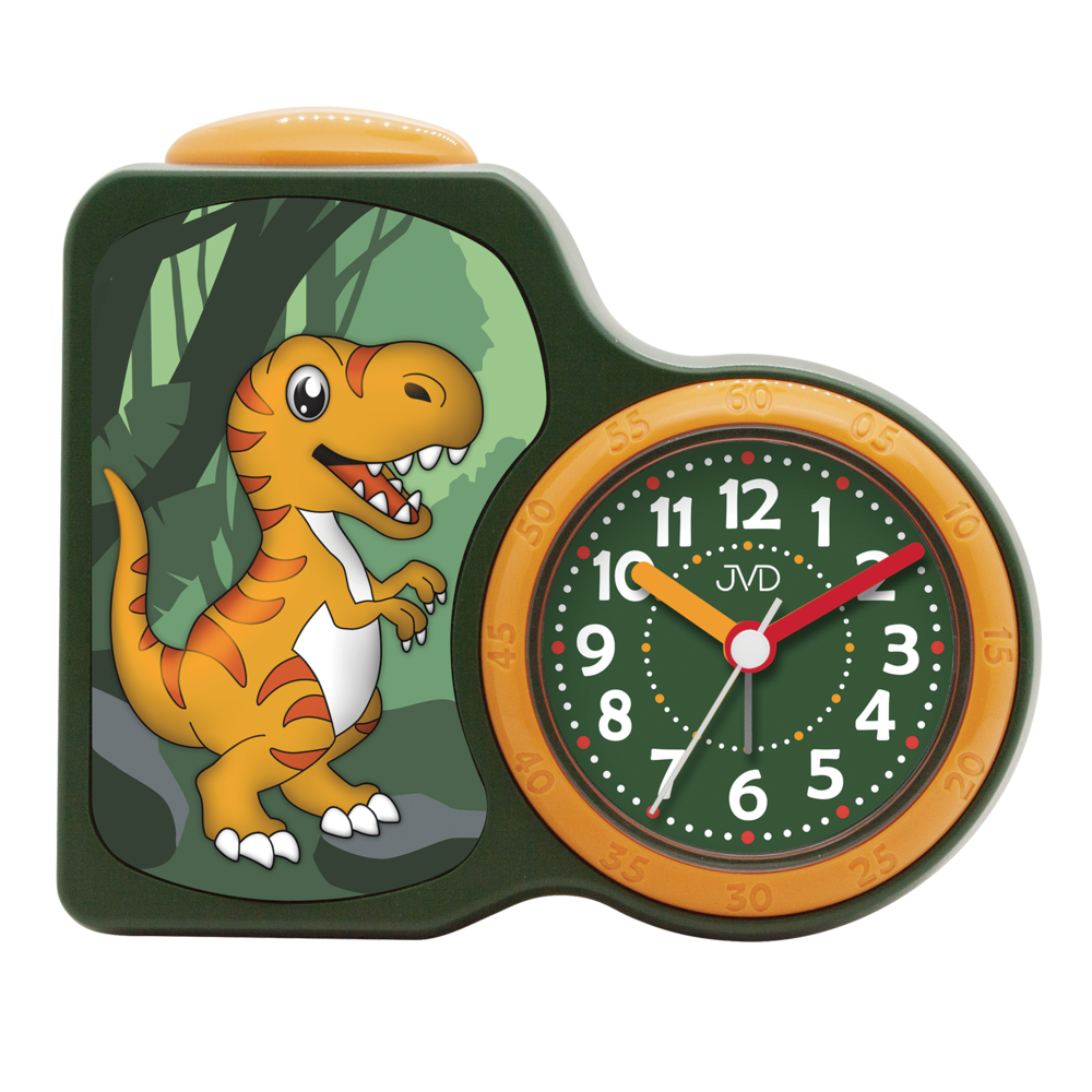 JVD Dětský netikající tichý sweep budík JVD SRP163.1 s dinosauremSkladem539 Kč/ ks445 Kč bez DPH