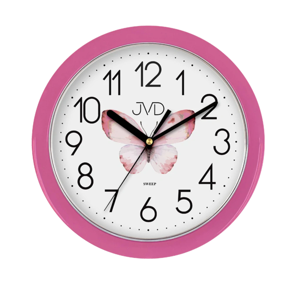 JVD Růžové dětské netikající tiché hodiny JVD HP612.D12 s motýlemSkladem399 Kč/ ks330 Kč bez DPH